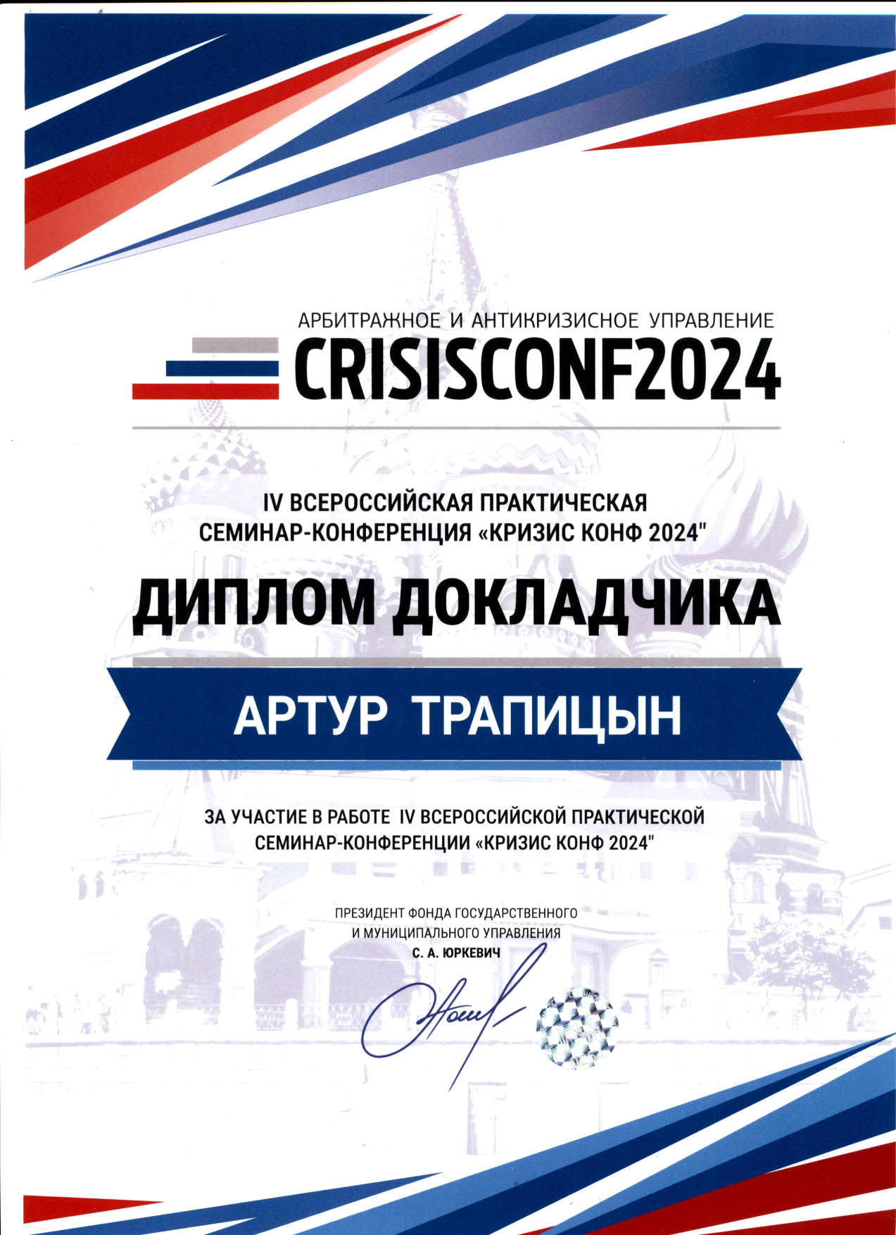 В семинар-конференции принял участие Председатель Совета Ассоциации СОАУ «Меркурий» Трапицын Артур Викентьевич в качестве модератора первого блока конференции, в котором также выступил с темой «Субсидиарная ответственность руководителей в процедурах несостоятельности (банкротства)».